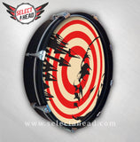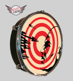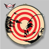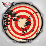Select a Head's custom wall drum displays are constructed from a high quality, 4-ply drum shell wrapped in black PVC with black die cast metal hoops, chrome lugs, claws and rubber gaskets to prevent scratching. Heads are printed on matte vinyl for reduced glare.
