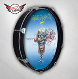 Select a Head's custom wall drum displays are constructed from a high quality, 4-ply drum shell wrapped in black PVC with black die cast metal hoops, chrome lugs, claws and rubber gaskets to prevent scratching. Heads are printed on matte vinyl for reduced glare.