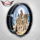 Select a Head's custom wall drum displays are constructed from a high quality, 4-ply drum shell wrapped in black PVC with black die cast metal hoops, chrome lugs, claws and rubber gaskets to prevent scratching. Heads are printed on matte vinyl for reduced glare.