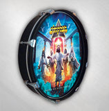 Select a Head's custom wall drum displays are constructed from a high quality, 4-ply drum shell wrapped in black PVC with black die cast metal hoops, chrome lugs, claws and rubber gaskets to prevent scratching. Heads are printed on matte vinyl for reduced glare.