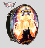 Select a Head's custom wall drum displays are constructed from a high quality, 4-ply drum shell wrapped in black PVC with black die cast metal hoops, chrome lugs, claws and rubber gaskets to prevent scratching. Heads are printed on matte vinyl for reduced glare.