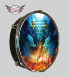 Select a Head's custom wall drum displays are constructed from a high quality, 4-ply drum shell wrapped in black PVC with black die cast metal hoops, chrome lugs, claws and rubber gaskets to prevent scratching. Heads are printed on matte vinyl for reduced glare.
