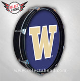 Select a Head's custom wall drum displays are constructed from a high quality, 4-ply drum shell wrapped in black PVC with black die cast metal hoops, chrome lugs, claws and rubber gaskets to prevent scratching. Heads are printed on matte vinyl for reduced glare.